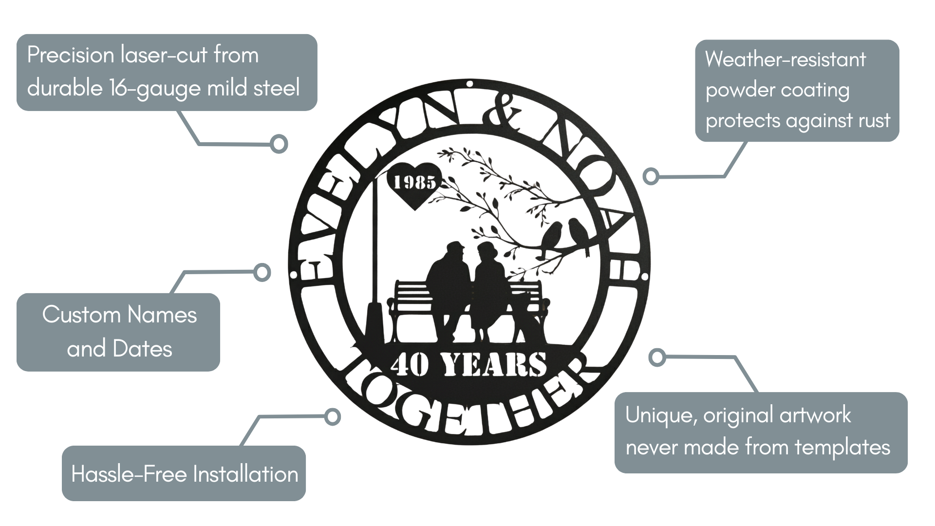 Perfect Gift For Wedding anniversaries (silver, ruby, golden, diamond, etc.), Couples celebrating milestone years together, Parents or grandparents’ anniversary gifts, and romantic home decor or outdoor garden art.